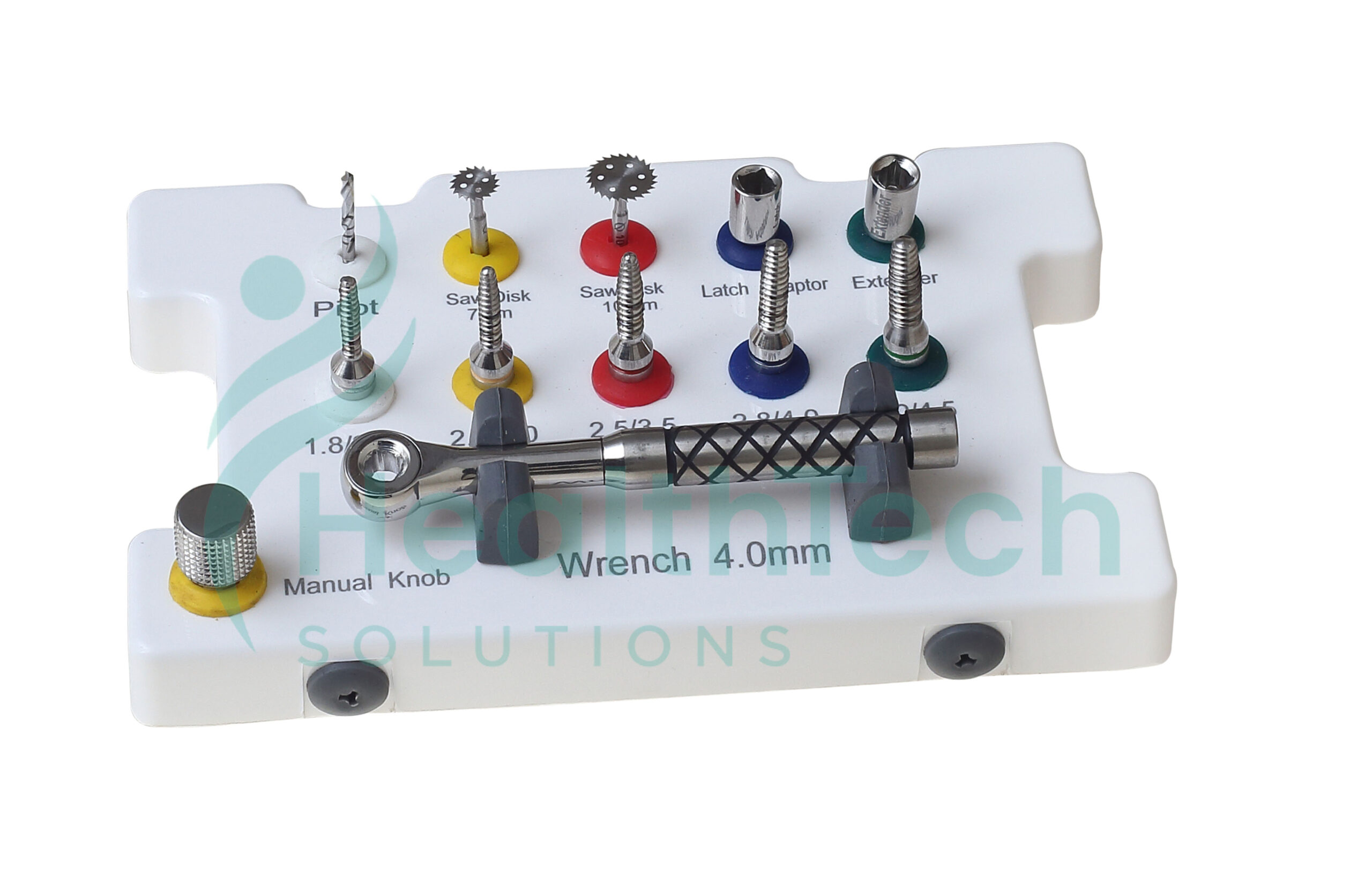 Expander Screws: 1.6 / 2.6 mm – 1.9 / 3.0 mm – 2.1 / 3.4 mm – 2.6 / 3.8 mm – 2.9 / 4.3 mm with Laser Depth Marking on 8mm, 10mm & 11.5mm.